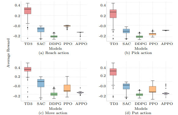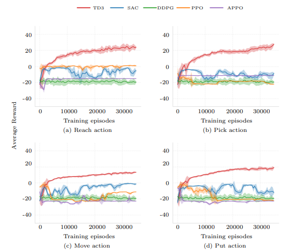 | Real experiment with Reach and Pick action using UF850 robot. | |